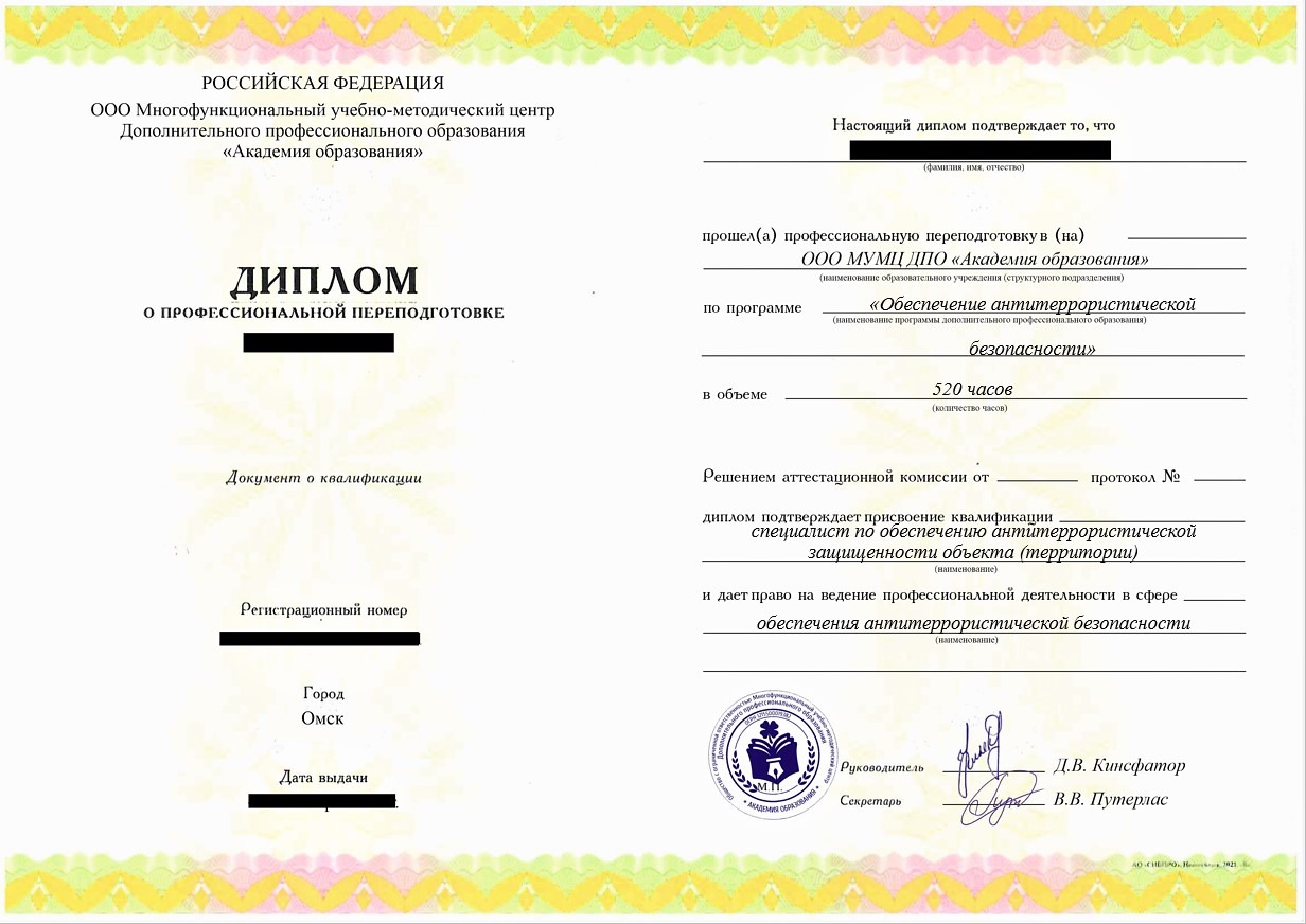 - Диплом о профессиональной переподготовке установленного государством образца