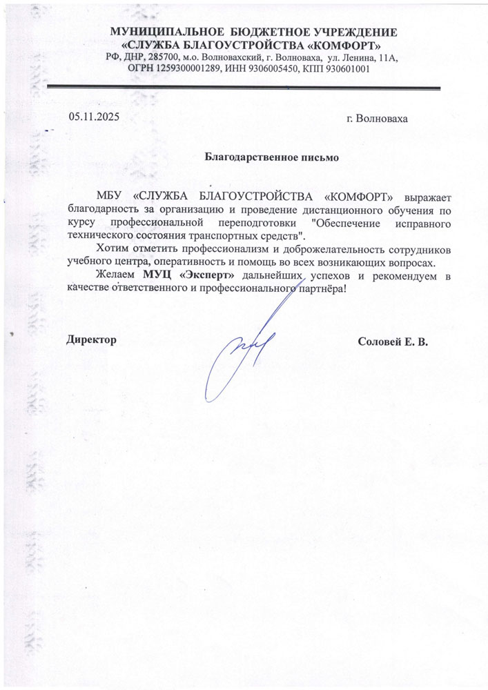 Все благодарственные письма → смотрите на этой странице